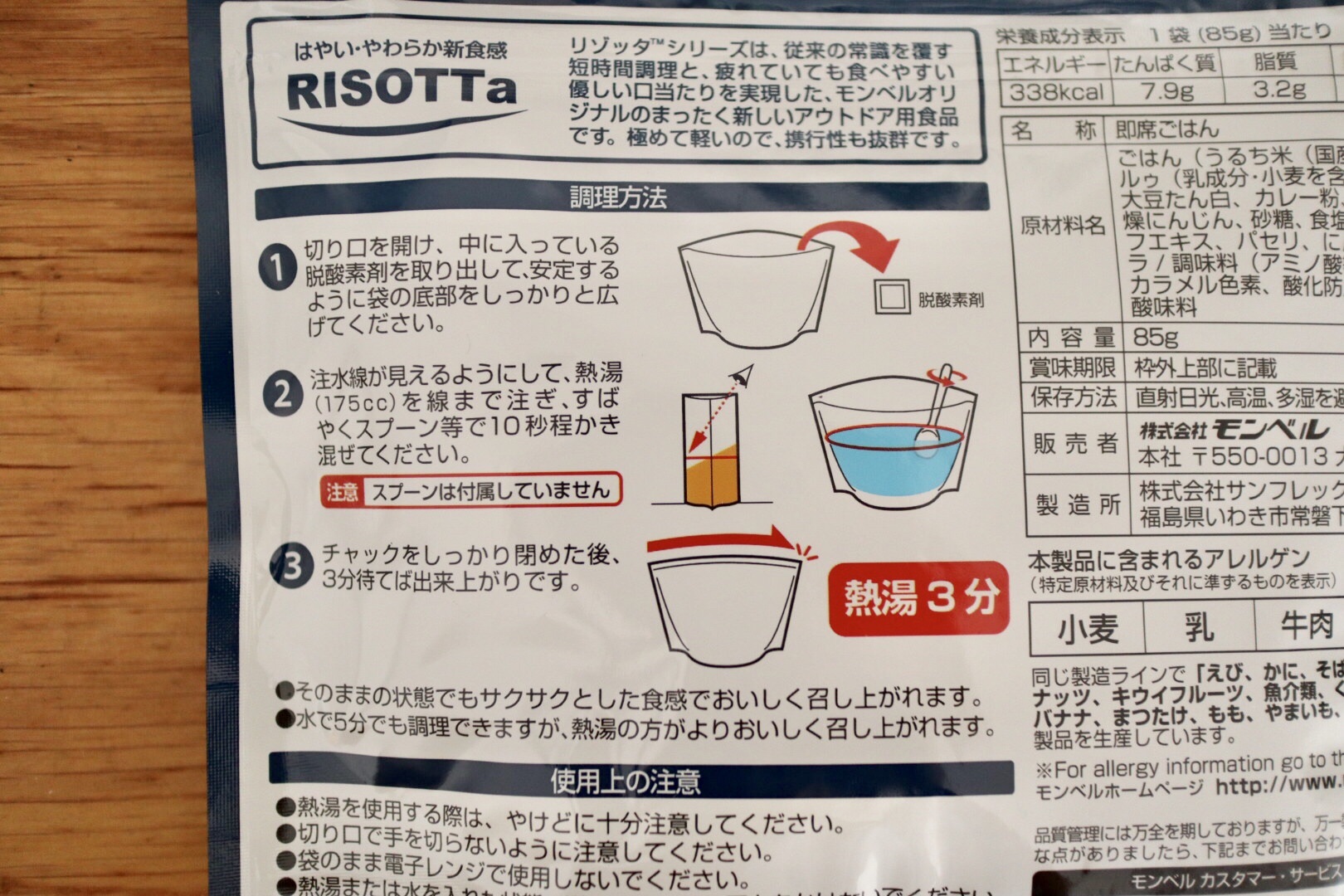 普通の非常食のお米より柔らかくできてるんですって。モンベル店員さんのお墨付きです。