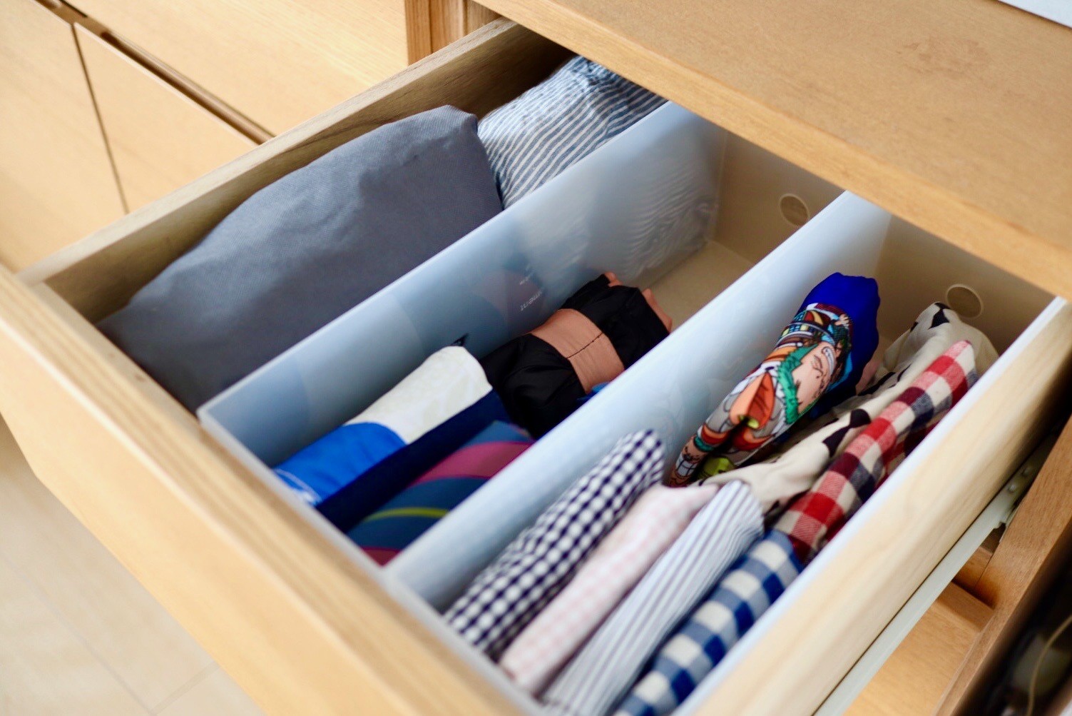 この引き出し、無印の「1/2ファイルボックス」が感動的にジャストサイズです!