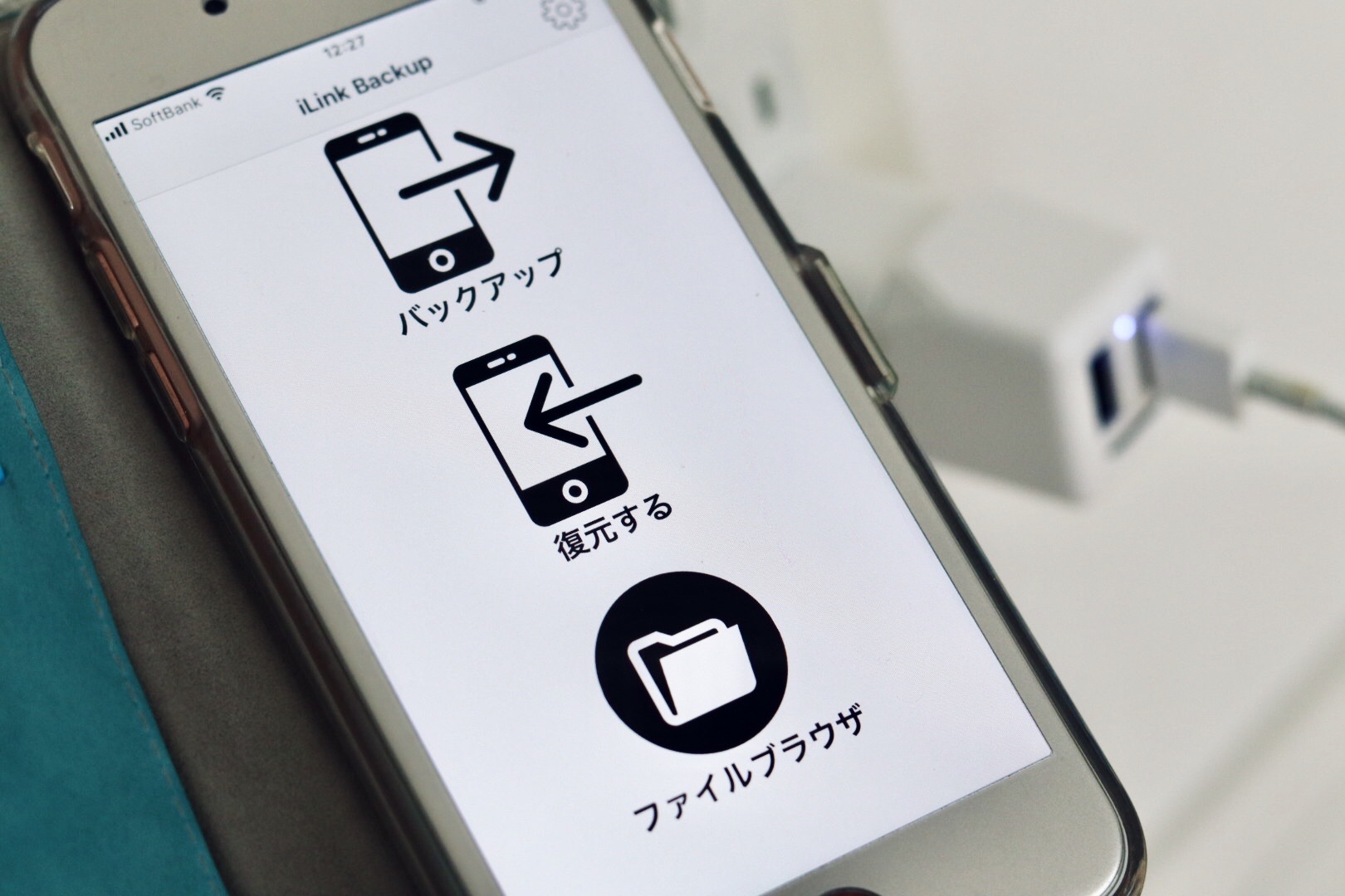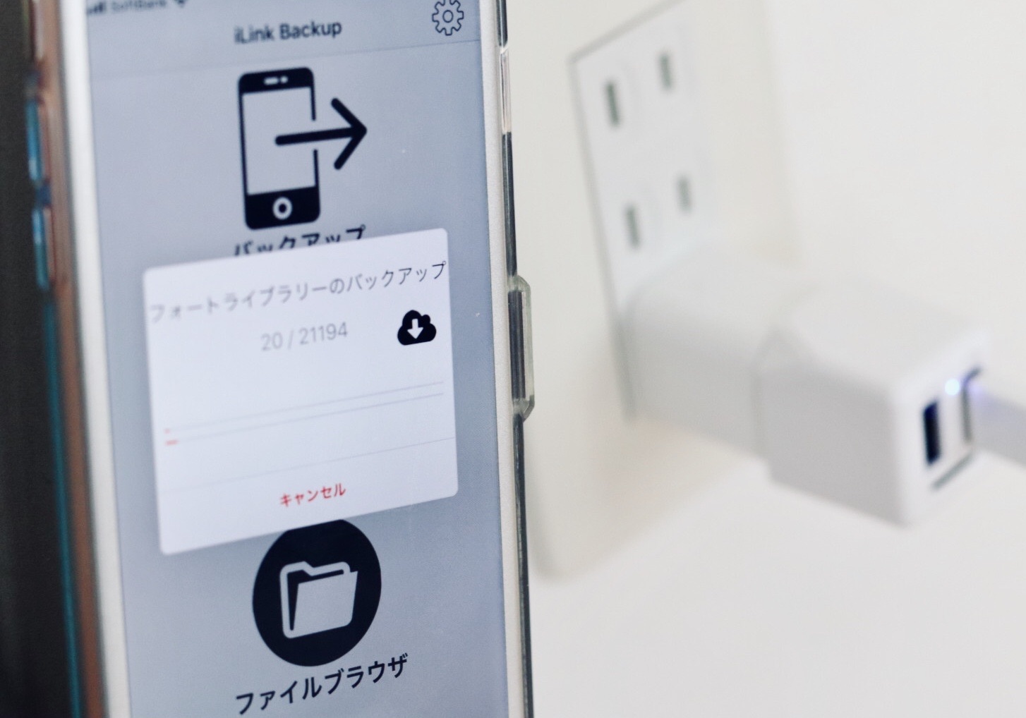 スマホもiPhoneなので同じクラウド上に保存されるんですが、「データを自動保存する充電アダプター」なるものを試してみました!