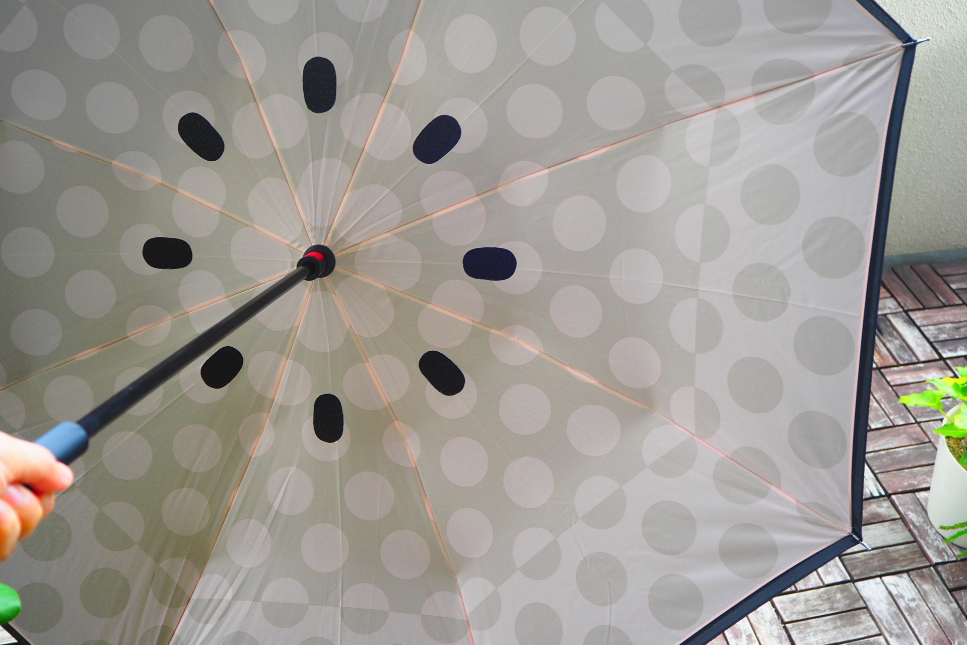 傘が内側じゃなく、外側に閉じるんです。