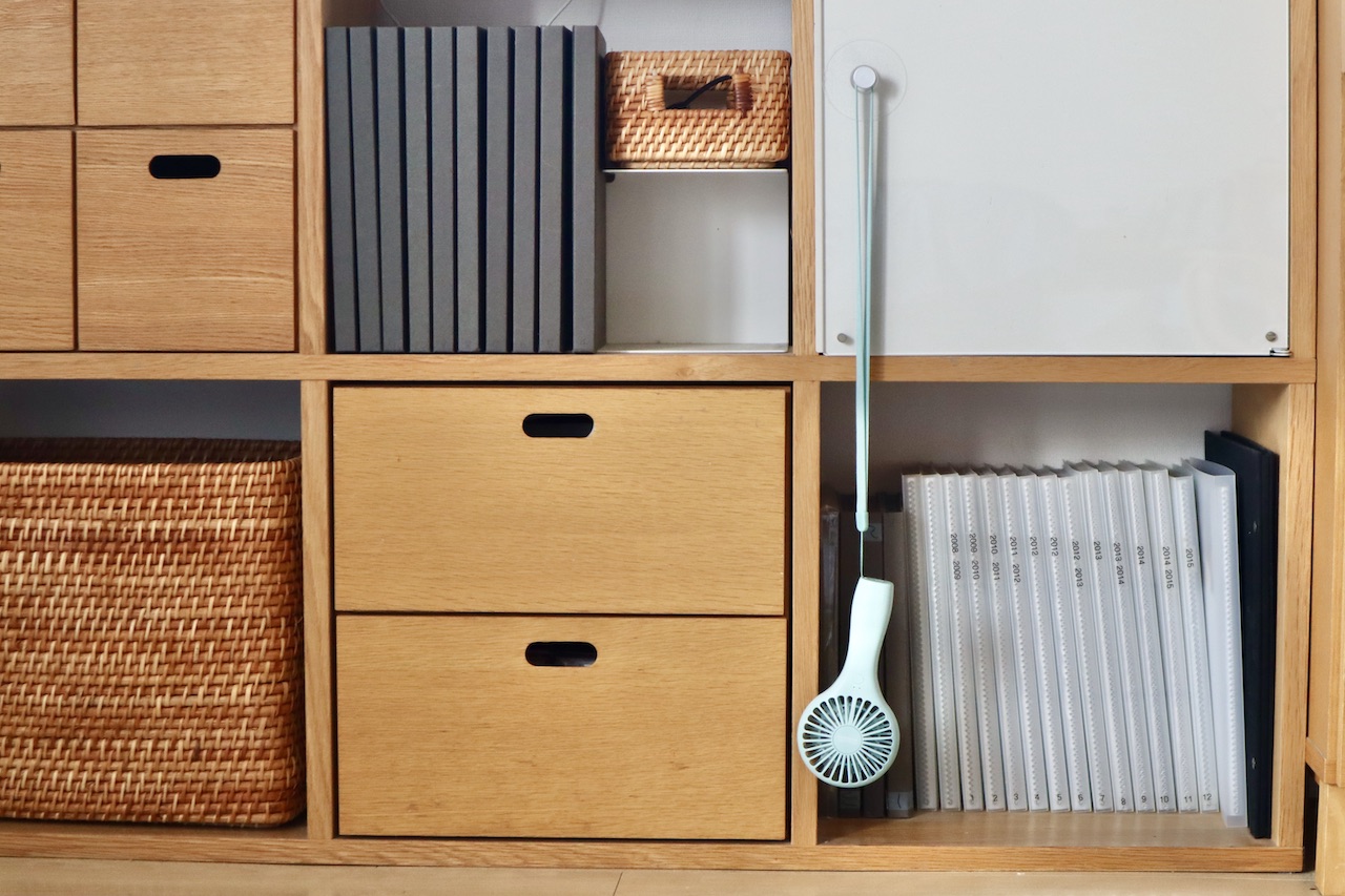 ほら、置きっぱなしにしがちなハンディファンだって引っ掛けられる(笑)