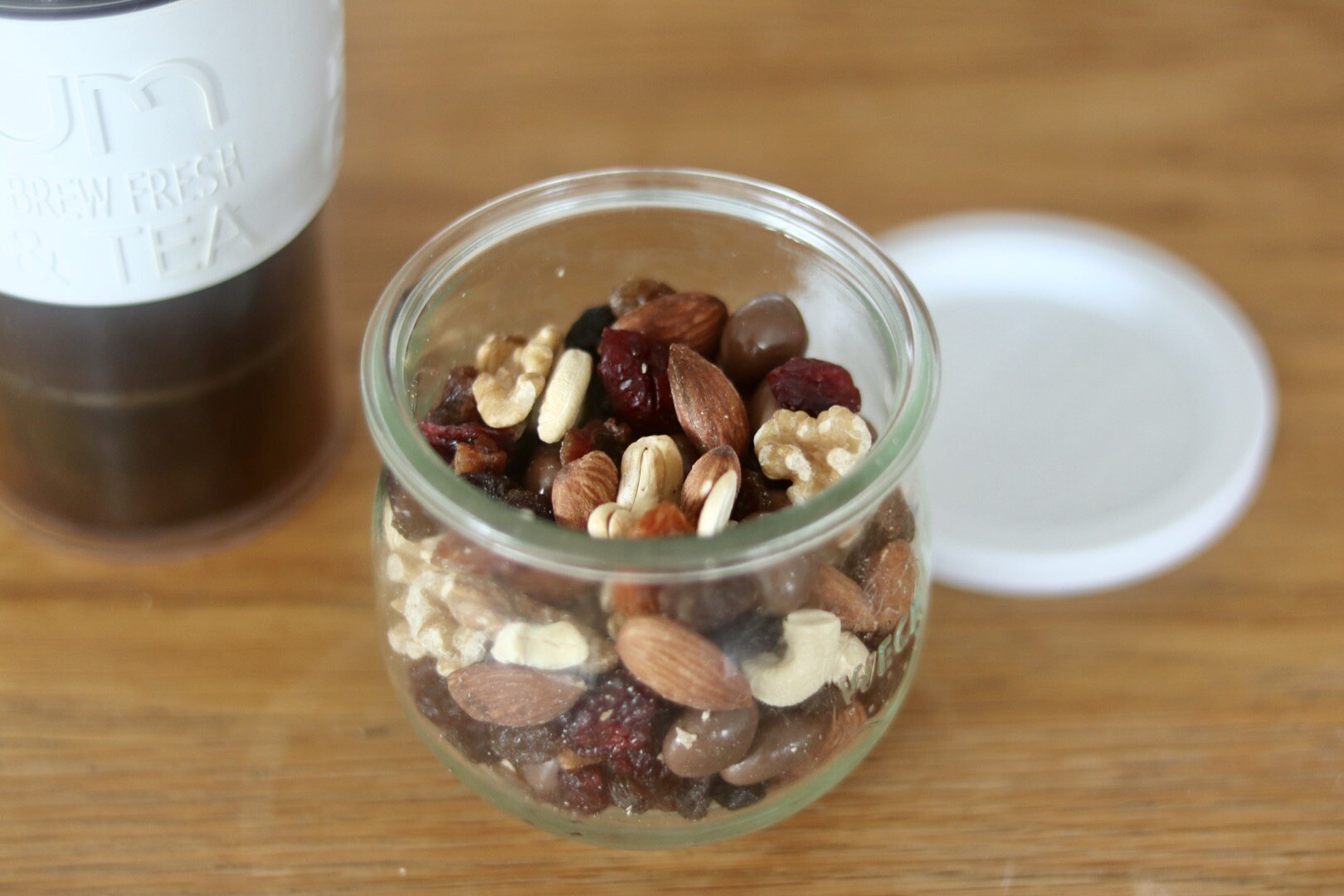 酸っぱいドライフルーツ(ゴールデンベリーやクランベリー)を食べて、チョコを食べて、ナッツ・・・