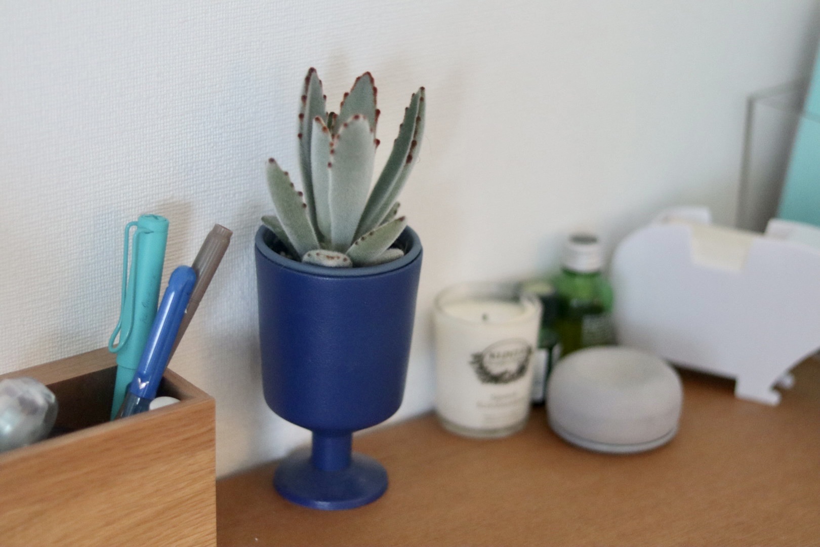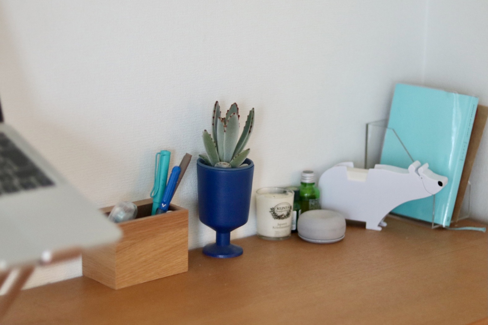 白い円筒状のは、無印のインテリアフレグランスの陶器です