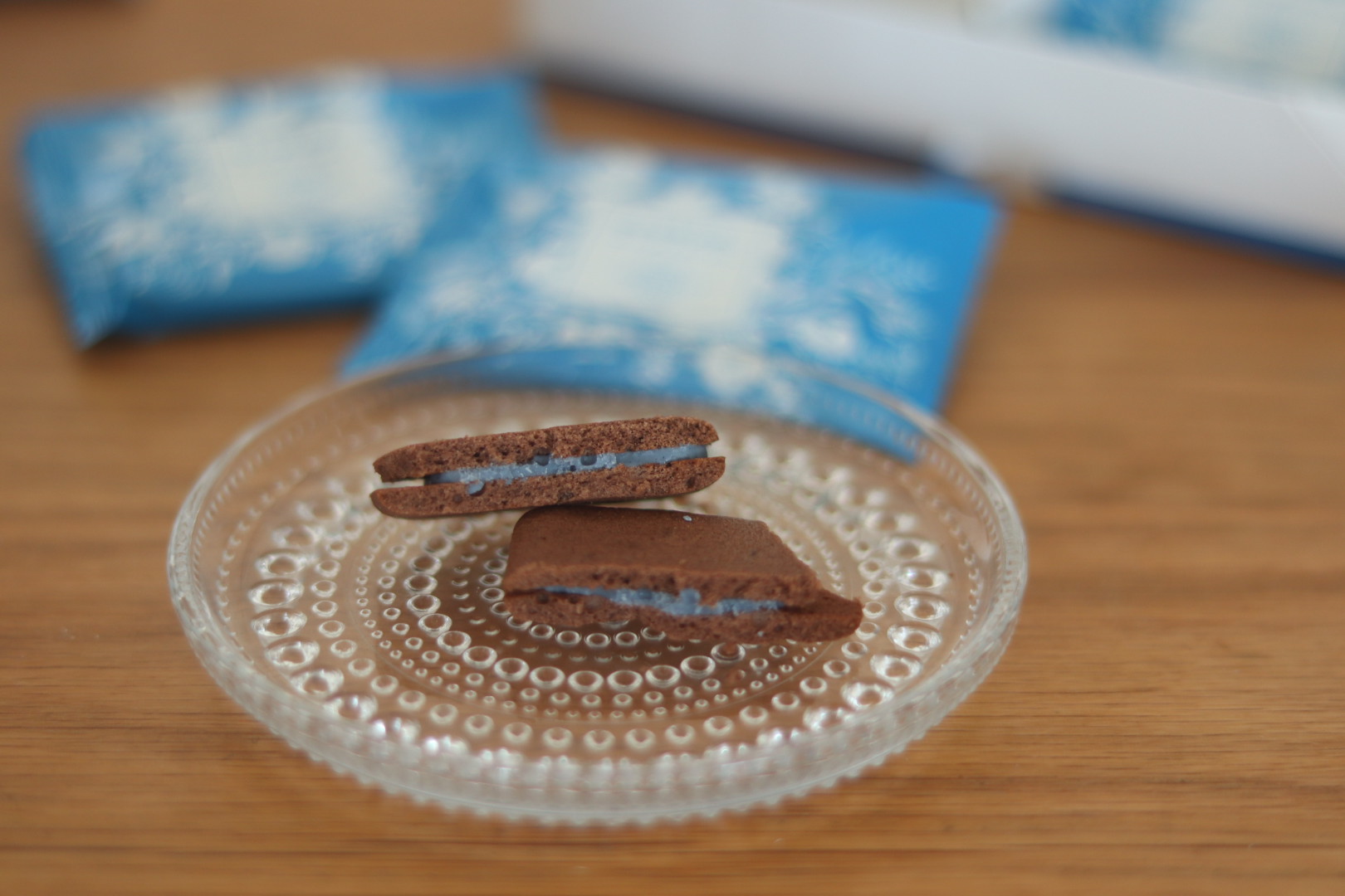 さっきの青いチョコがはさまったラングドシャ