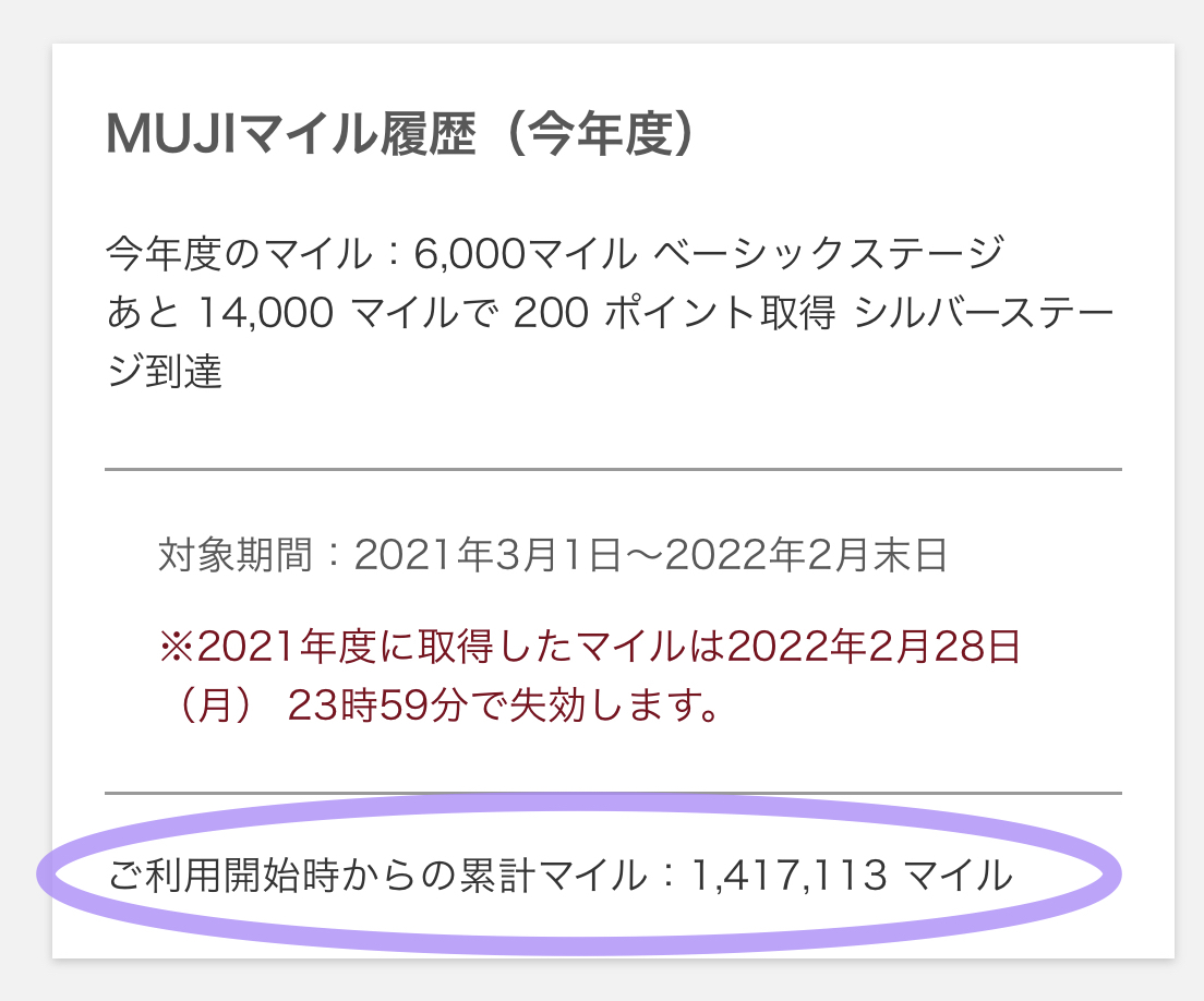 MUJIマイルもしっかりリセットされてました🤳