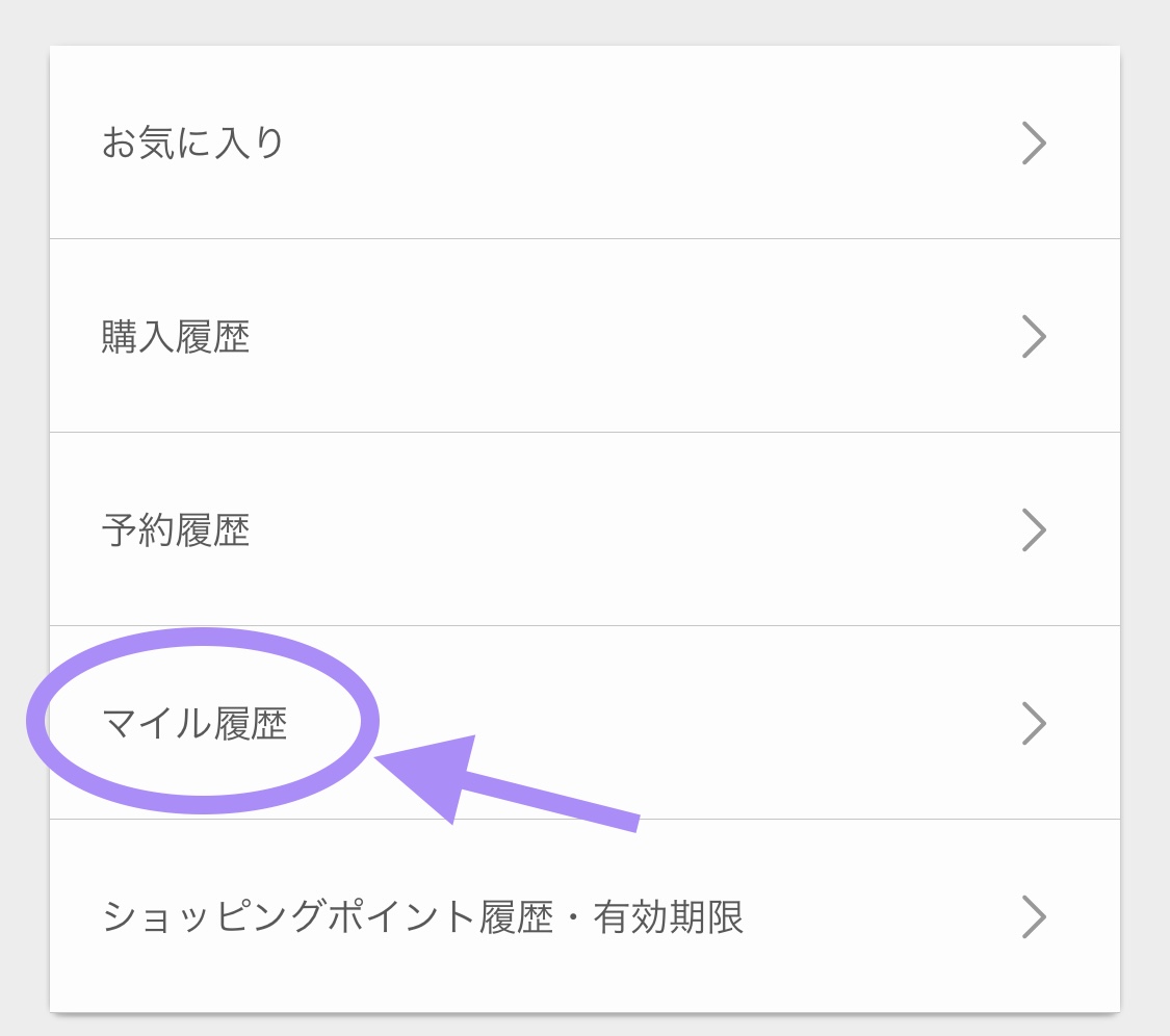 下の方にある「マイル履歴」を押しましょう!