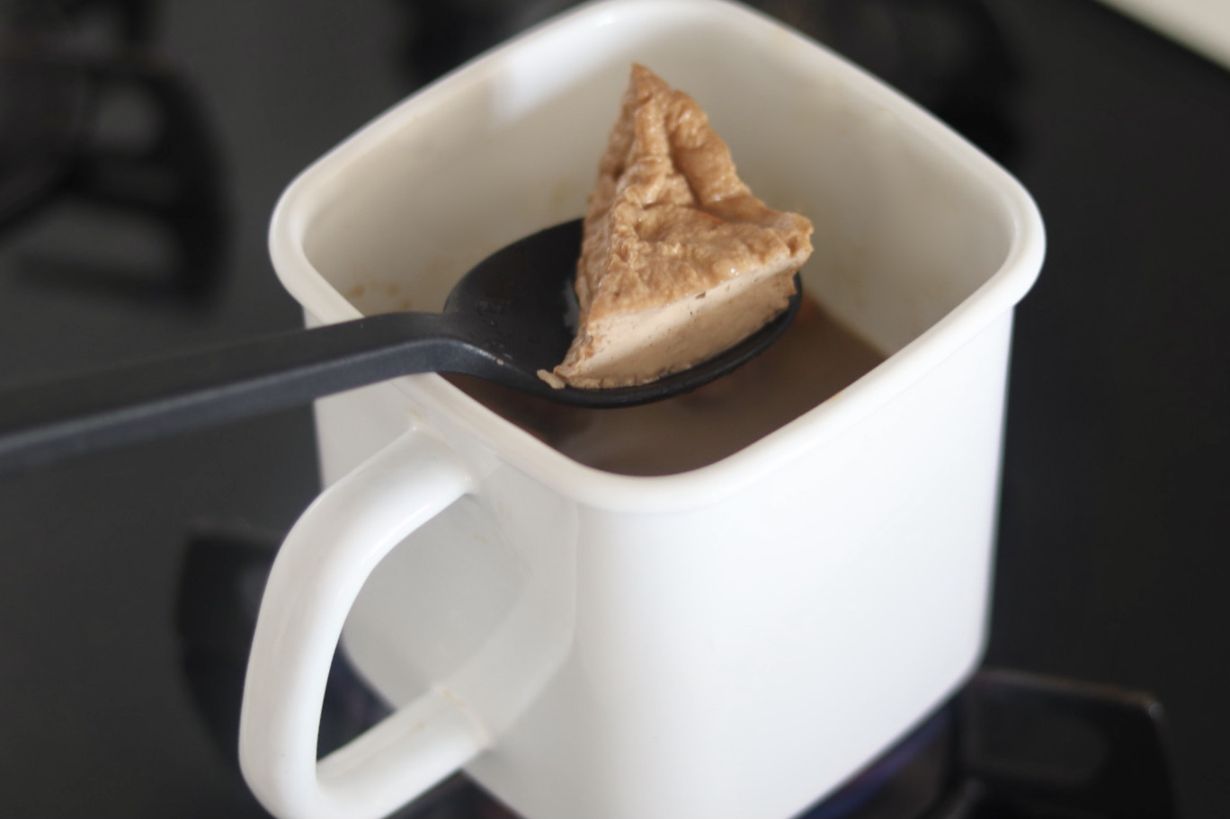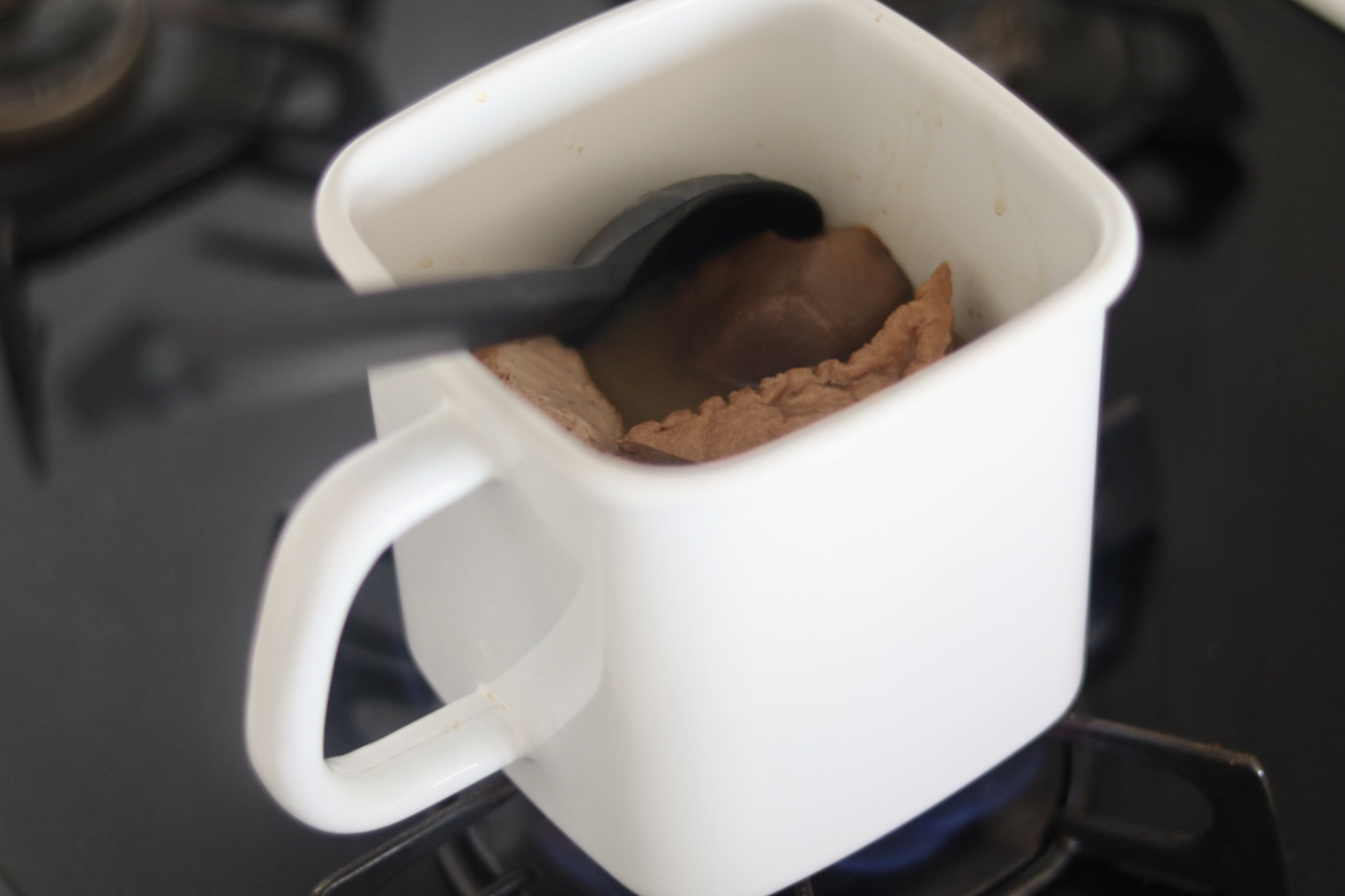 残った汁物は野田琺瑯の持ち手付きストッカーに入れて保存します。