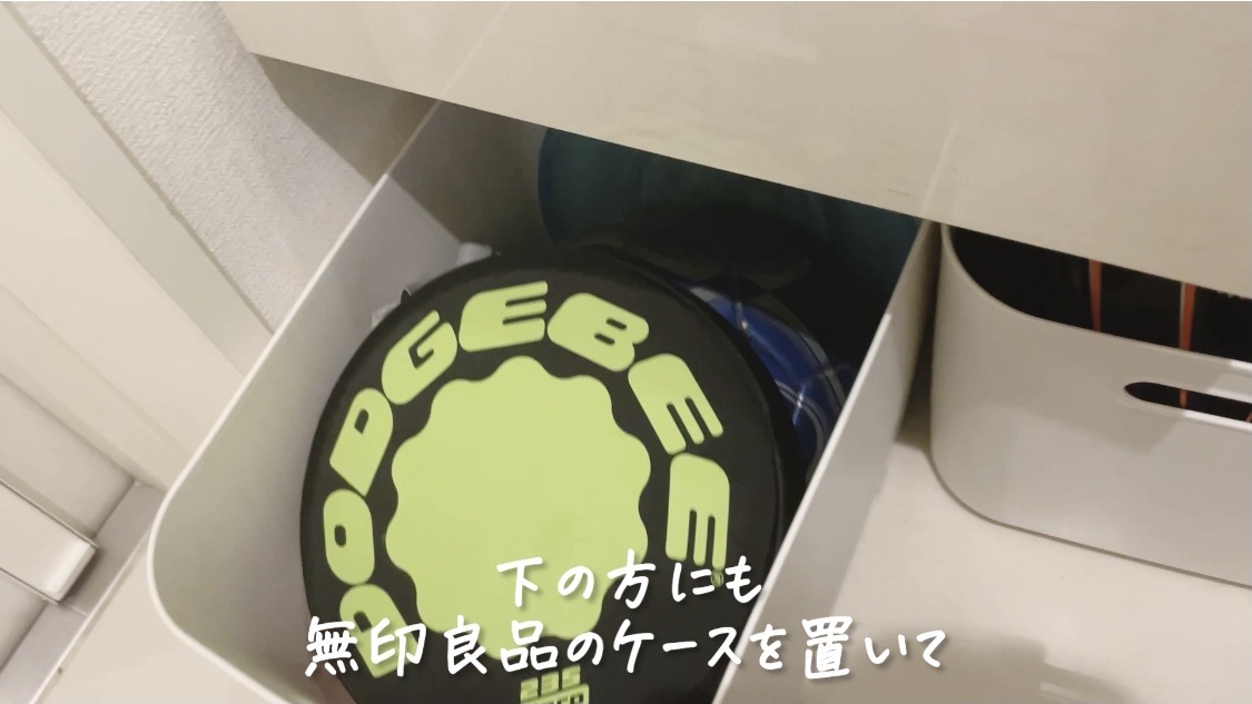 下の方には無印良品の「やわらかポリエチレンケース」置いてます