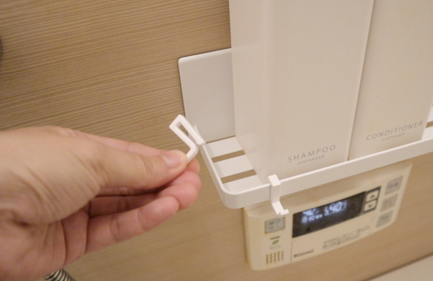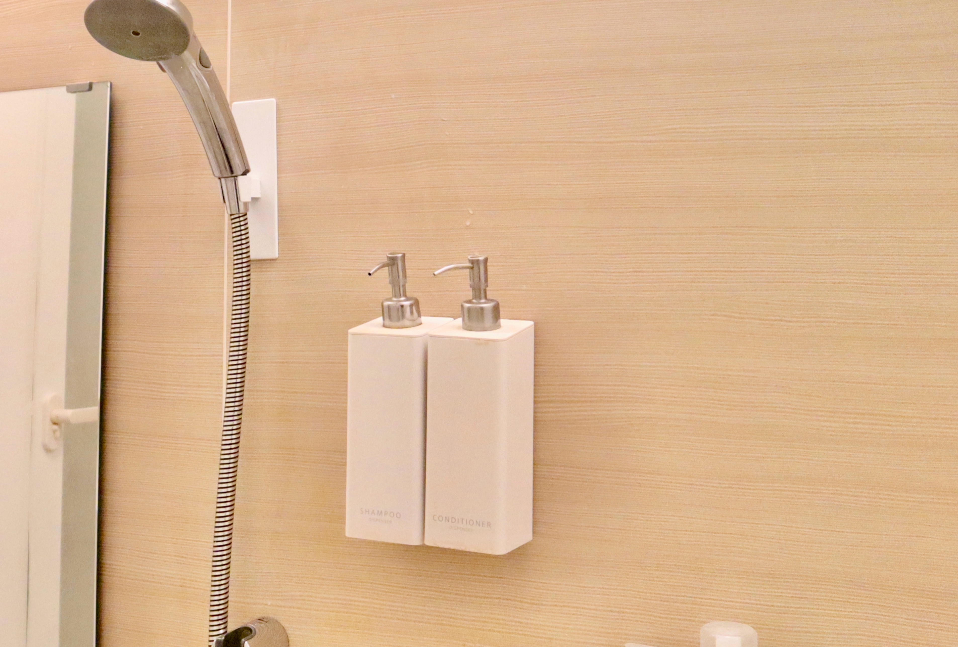 シャンプーボトルも実はマグネットがついてるので浮かせられます。