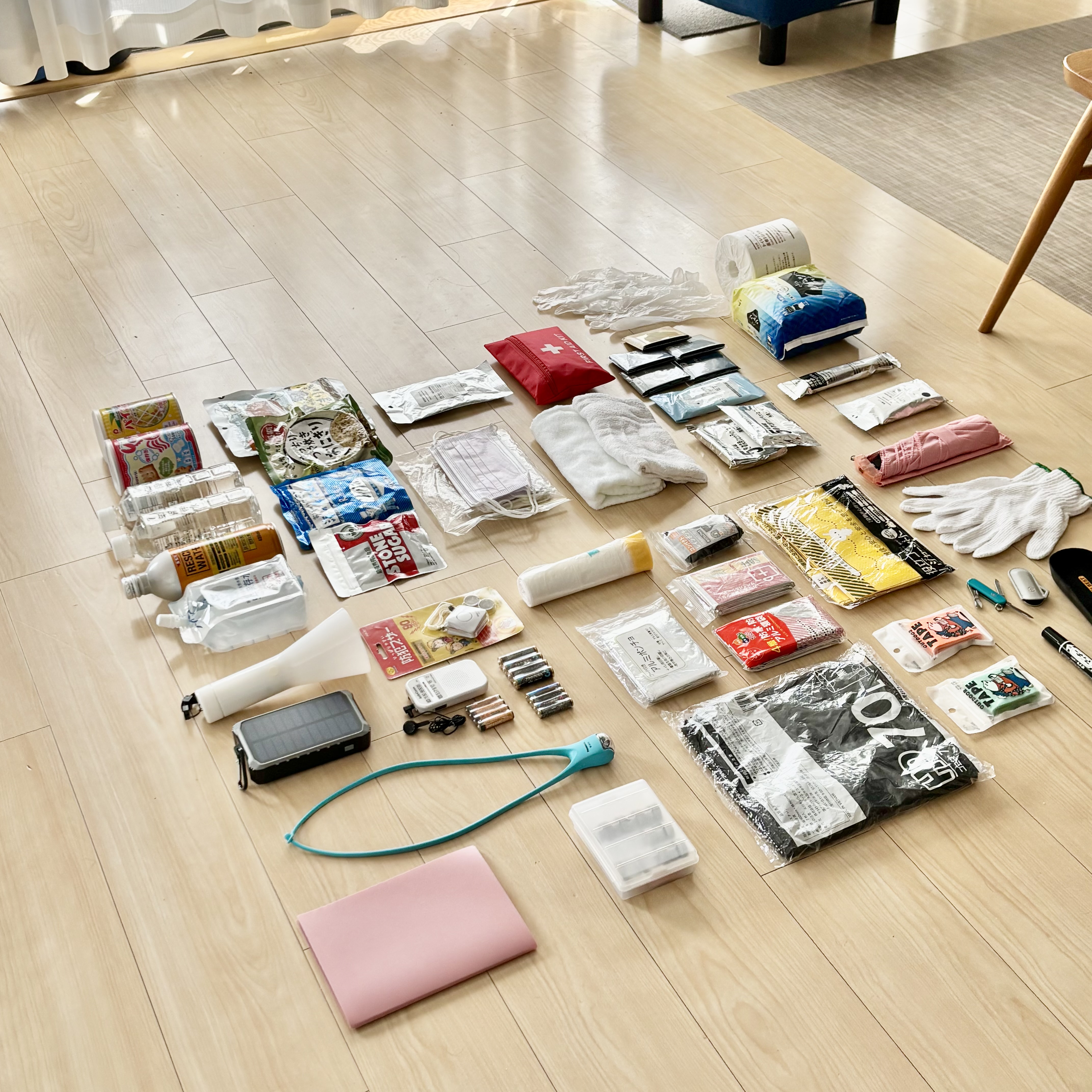(上の写真は防災リュックの中身)