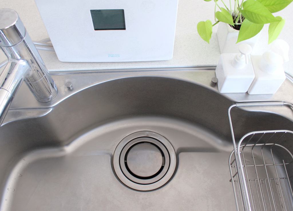 右の水切りラックは何かと必要ですが、