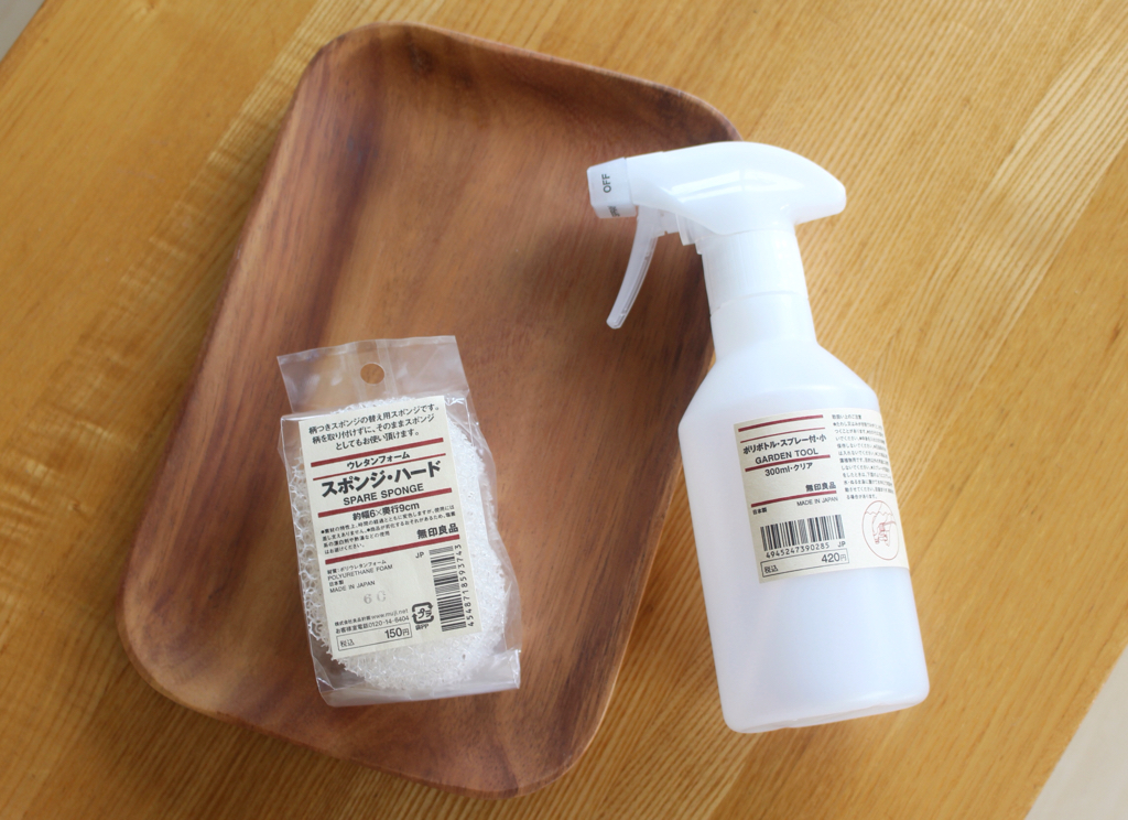 スプレーボトル、替えスポンジ、アカシアプレート