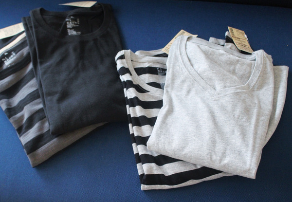 オーガニックコットンは肌触りいいし、Vネックの開き具合がちょうどいいんです(●・`ω・)b