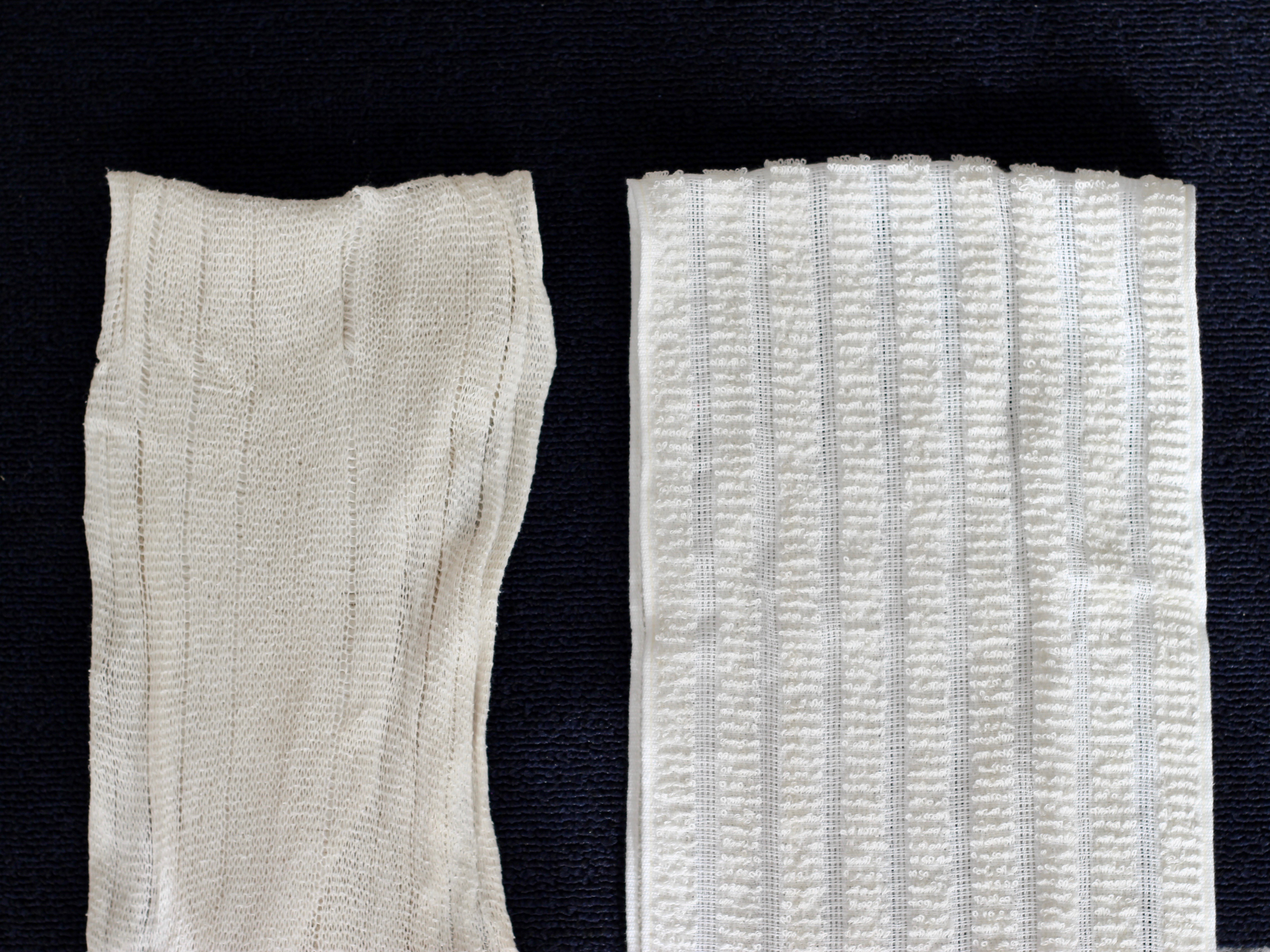 左のヨレヨレになったボディタオル…。