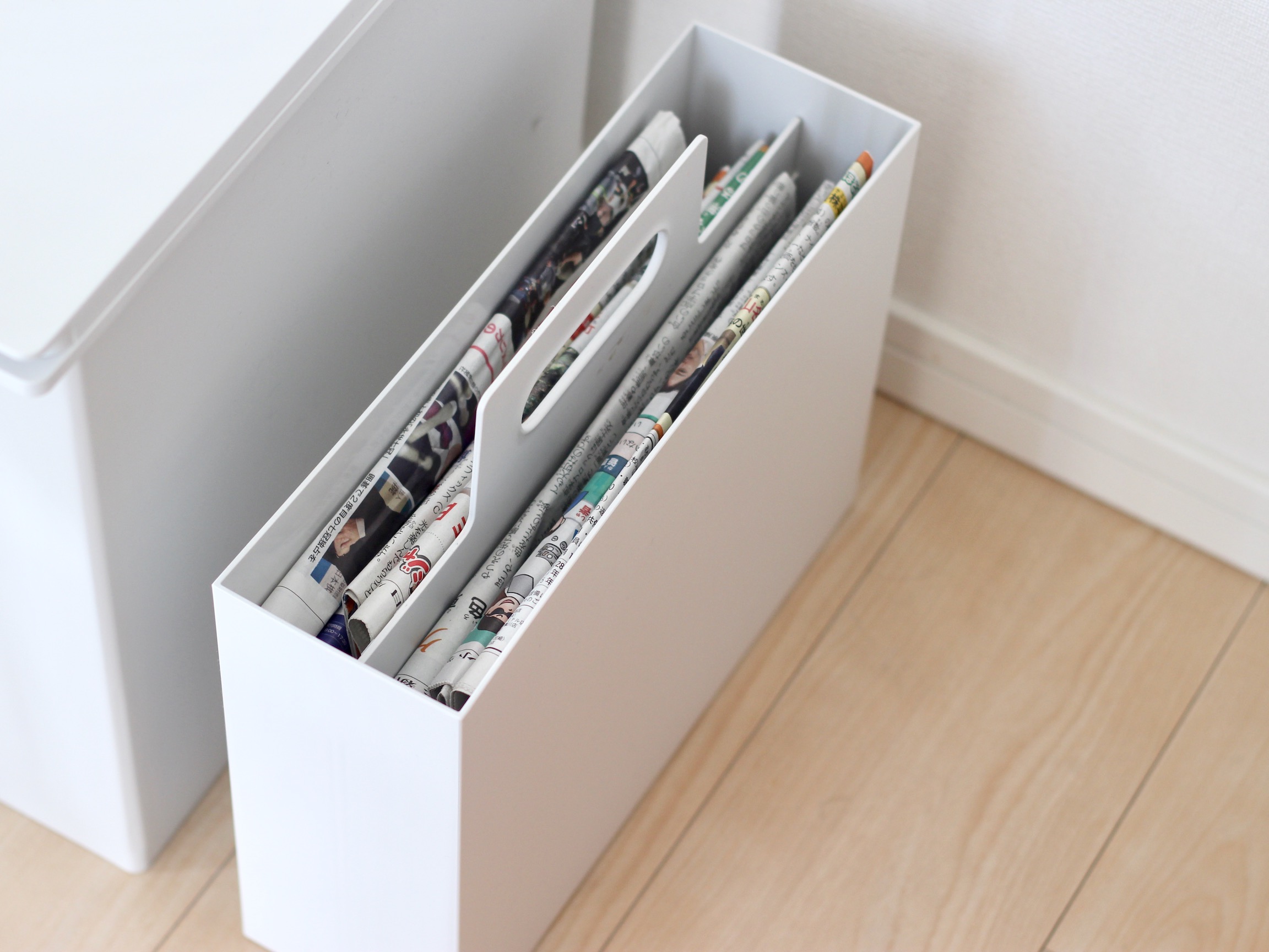 そんな新聞は、持ち手付きファイルボックスに入れてます。