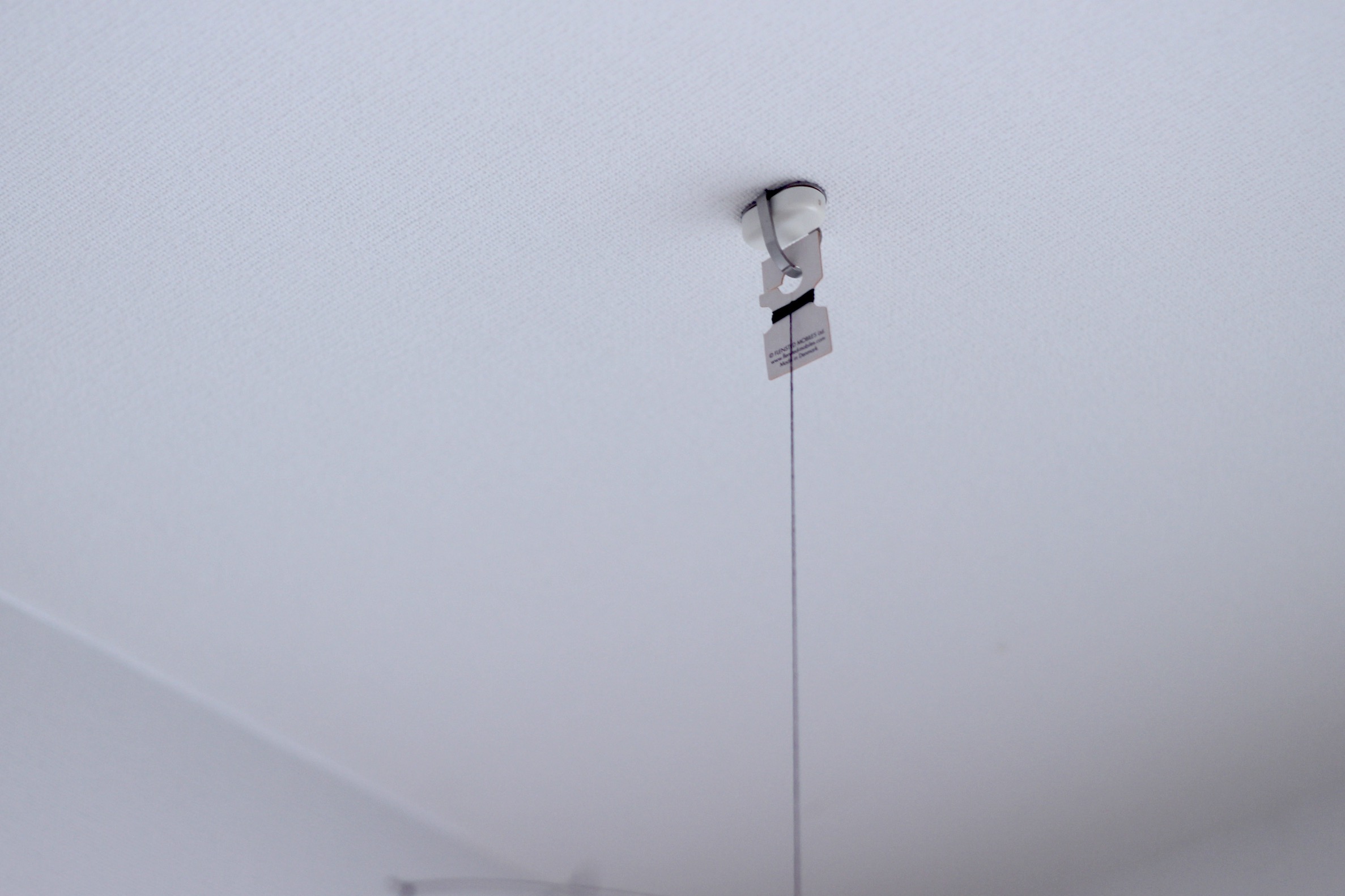 押しピンとかではなく、天井専用のフックを使ってます。