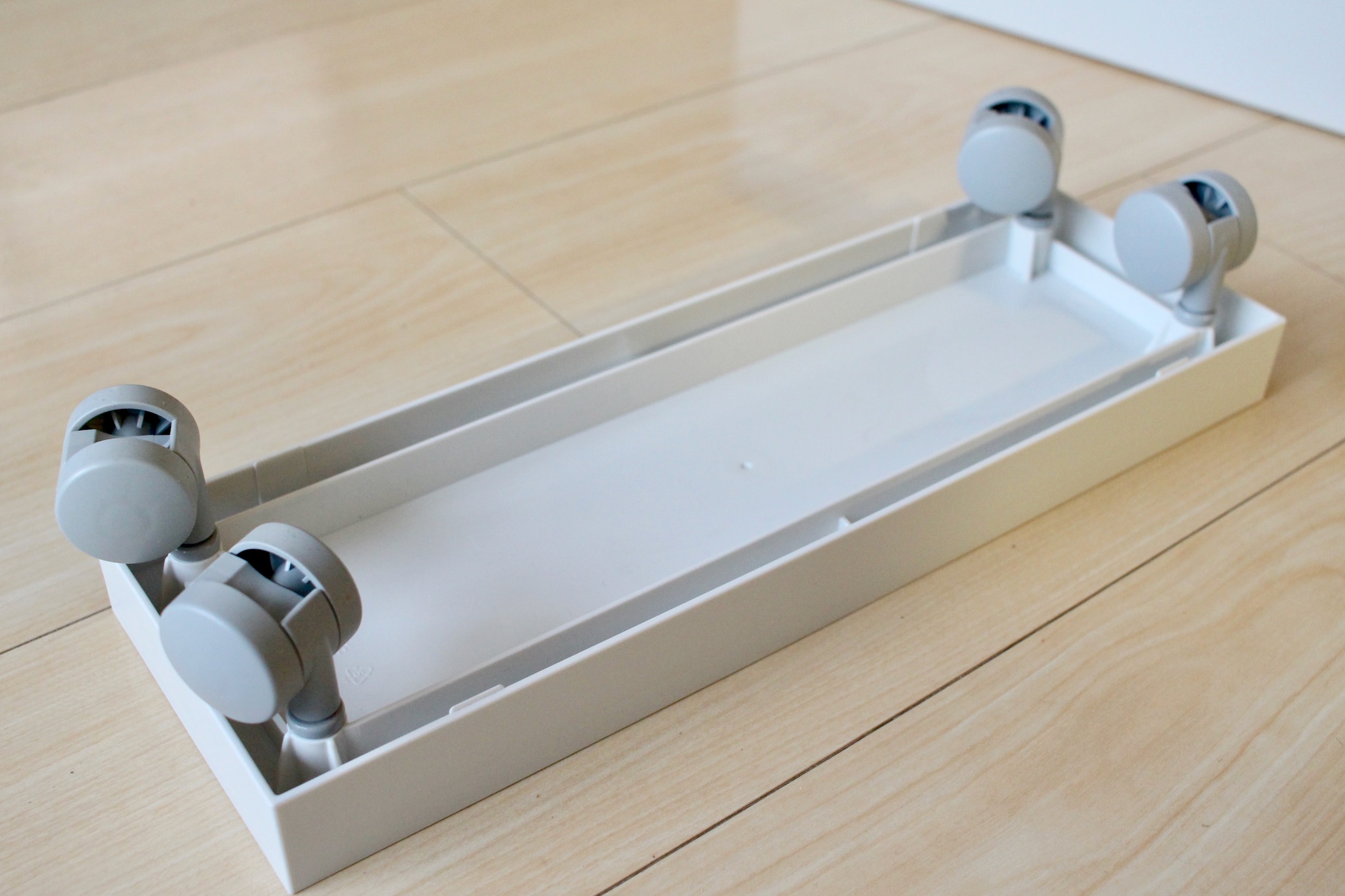 裏面にはキャスター用の穴が空いてるので別売りのキャスターをサクッと取付けまして、