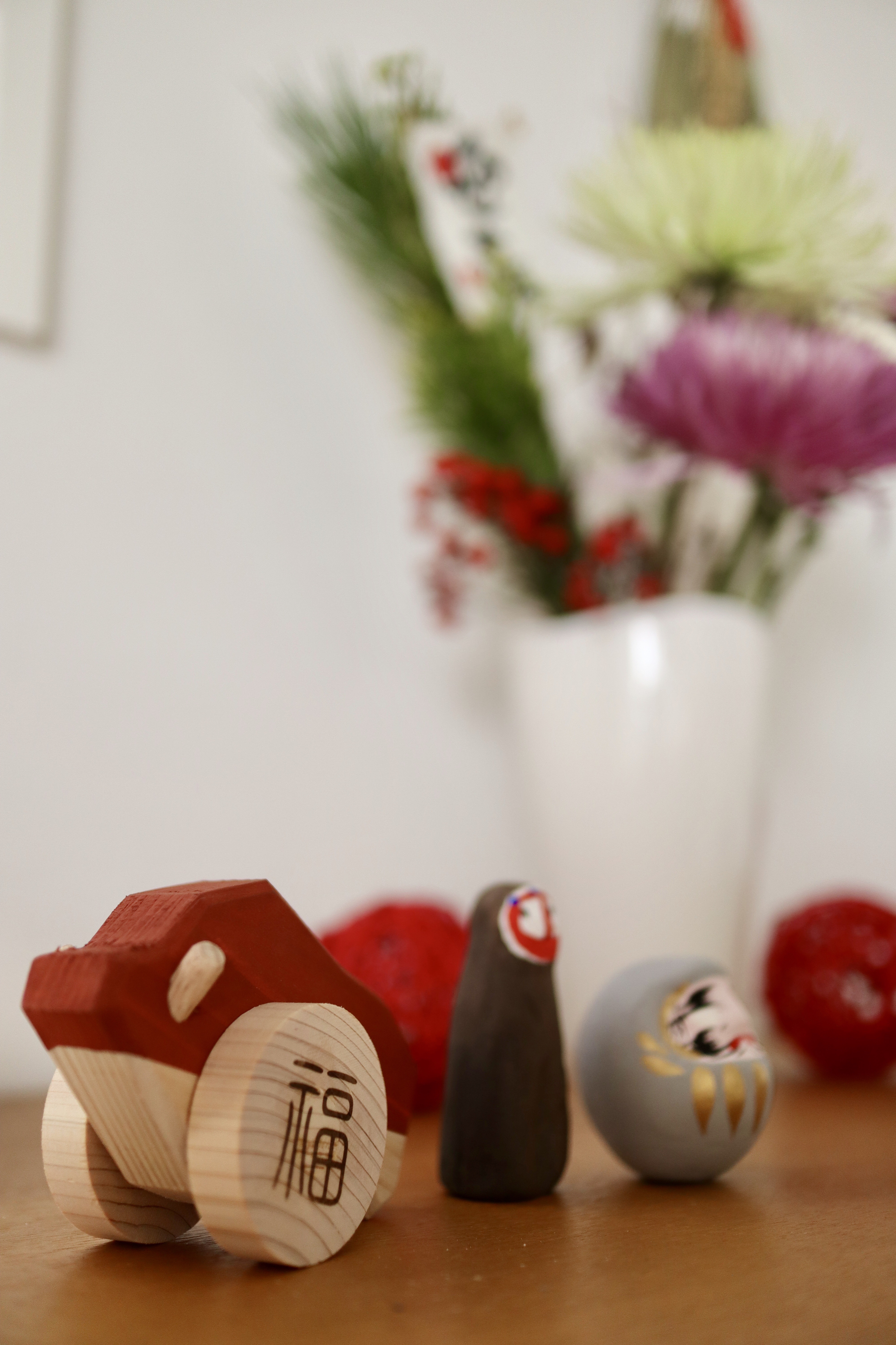 先日の福缶の縁起物、飾ってます。