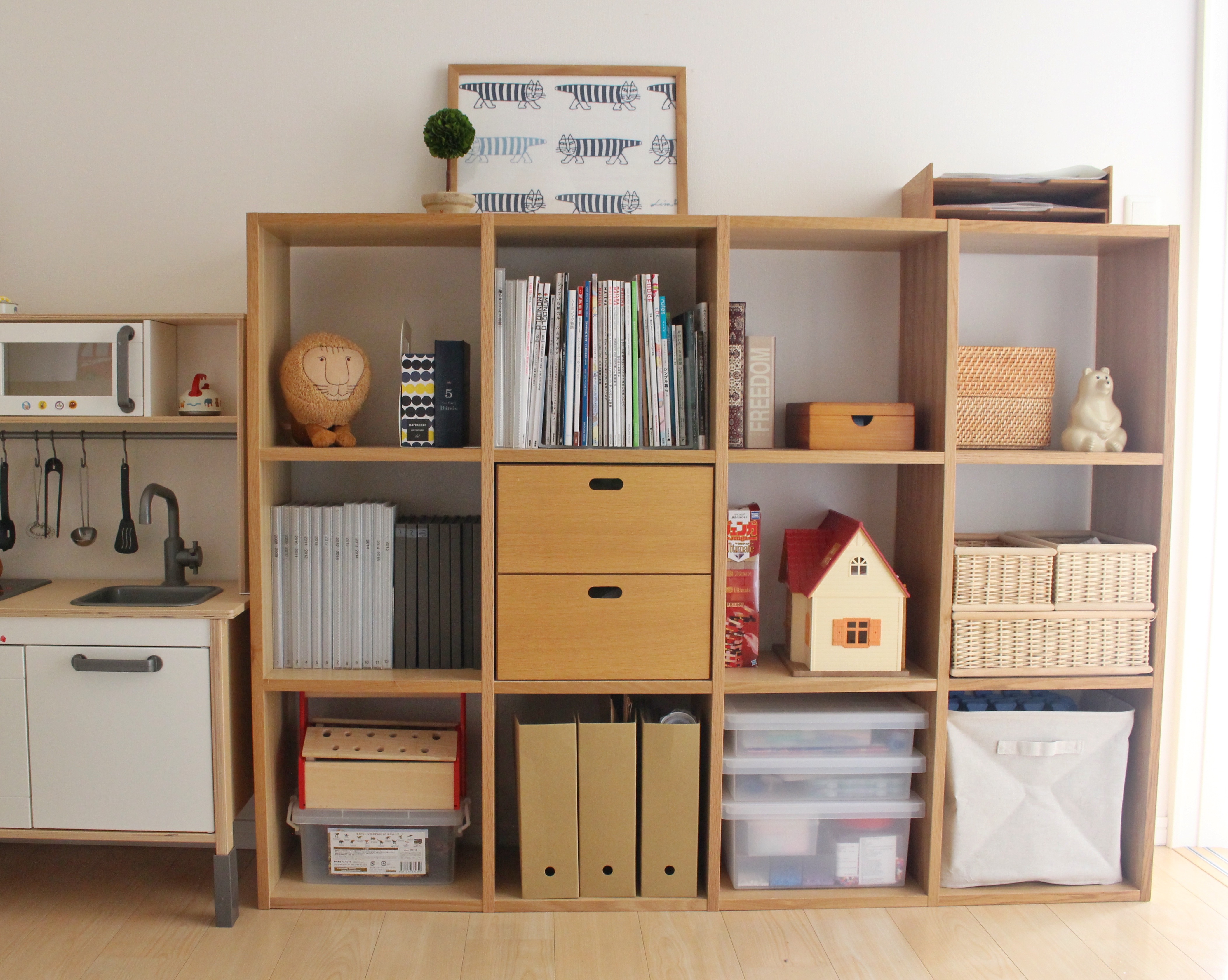 その後、絵本は子ども部屋のスタッキングシェルフに移動しました。