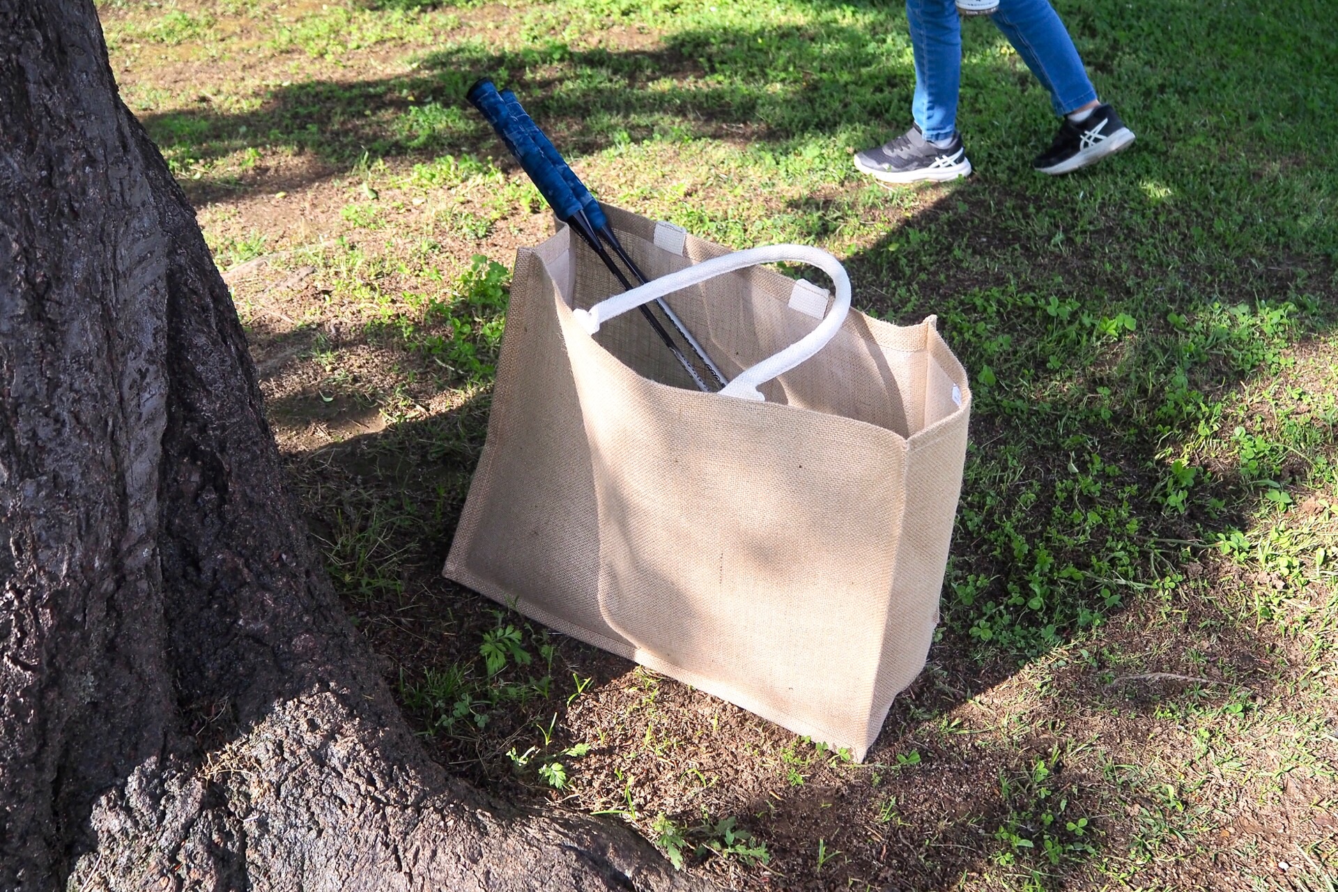 この前買った無印のジュートマイバッグに入れて。