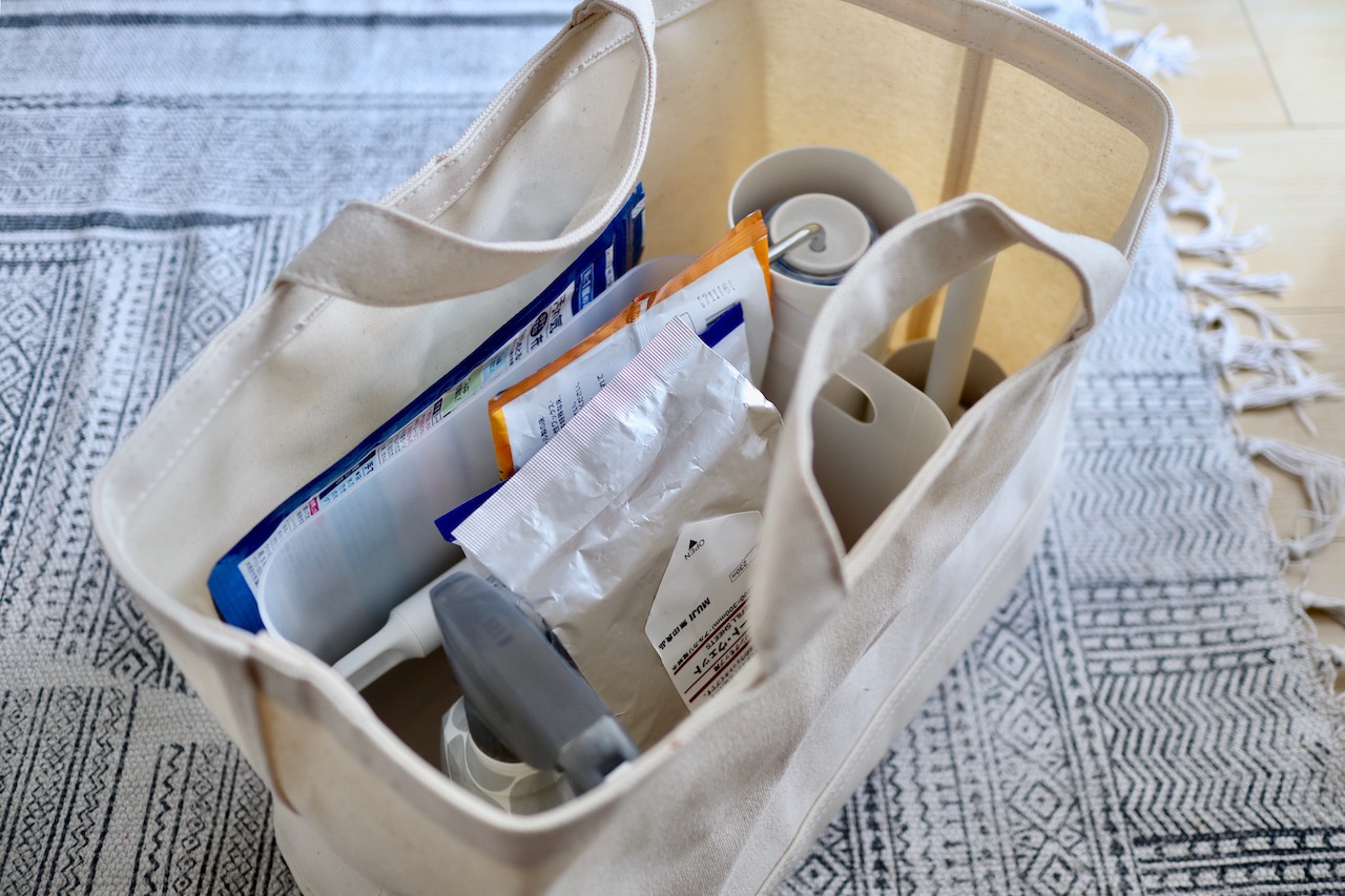 あのトートバッグみたいなのが掃除用具入れ。